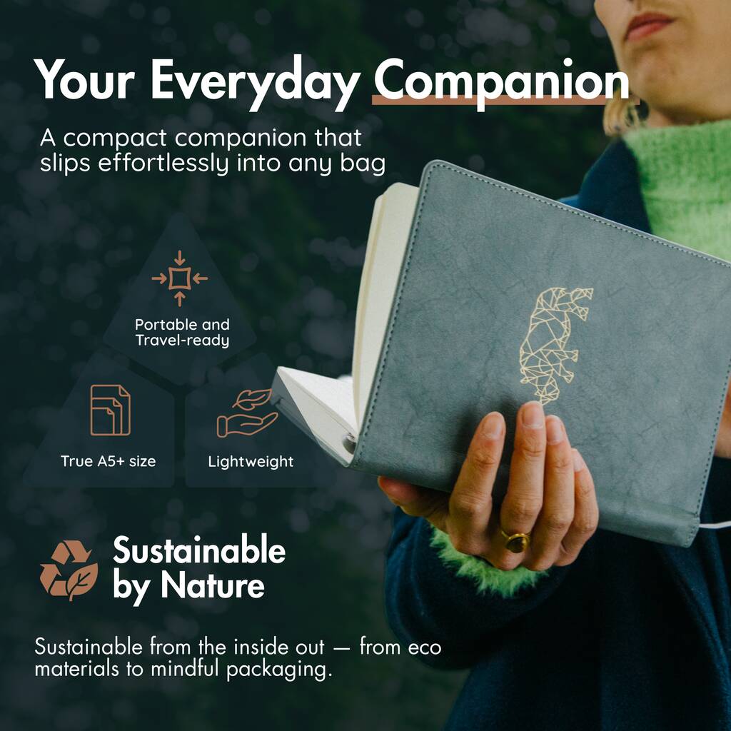 Our A5 Grey Rhino Notebook is available with your choice of Lined, Dotted, or Plain pages, so you can select the layout that best suits your style – whether it’s journaling, sketching, planning, or everyday note-taking.