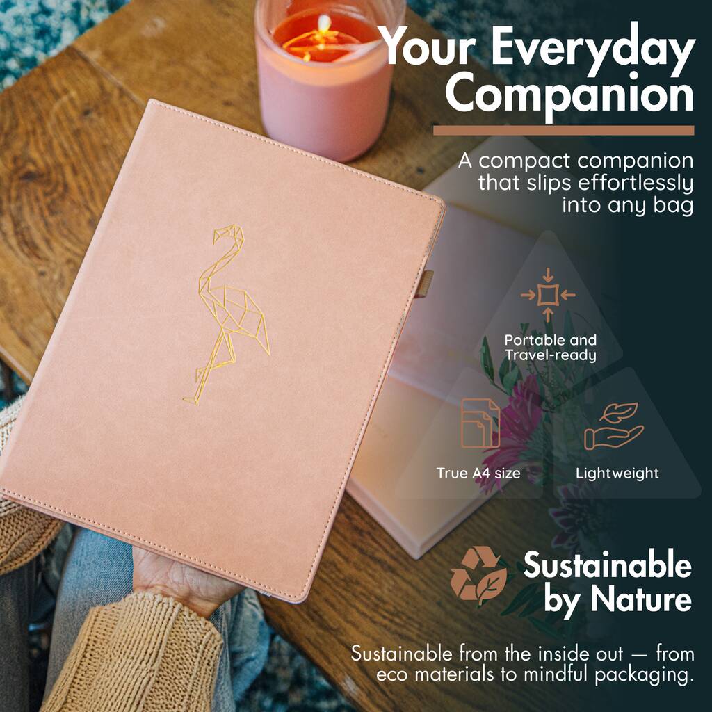Elevate your writing experience with our premium A4 Pink Flamingo Notebook, crafted for big ideas, professional notes, and everyday inspiration.