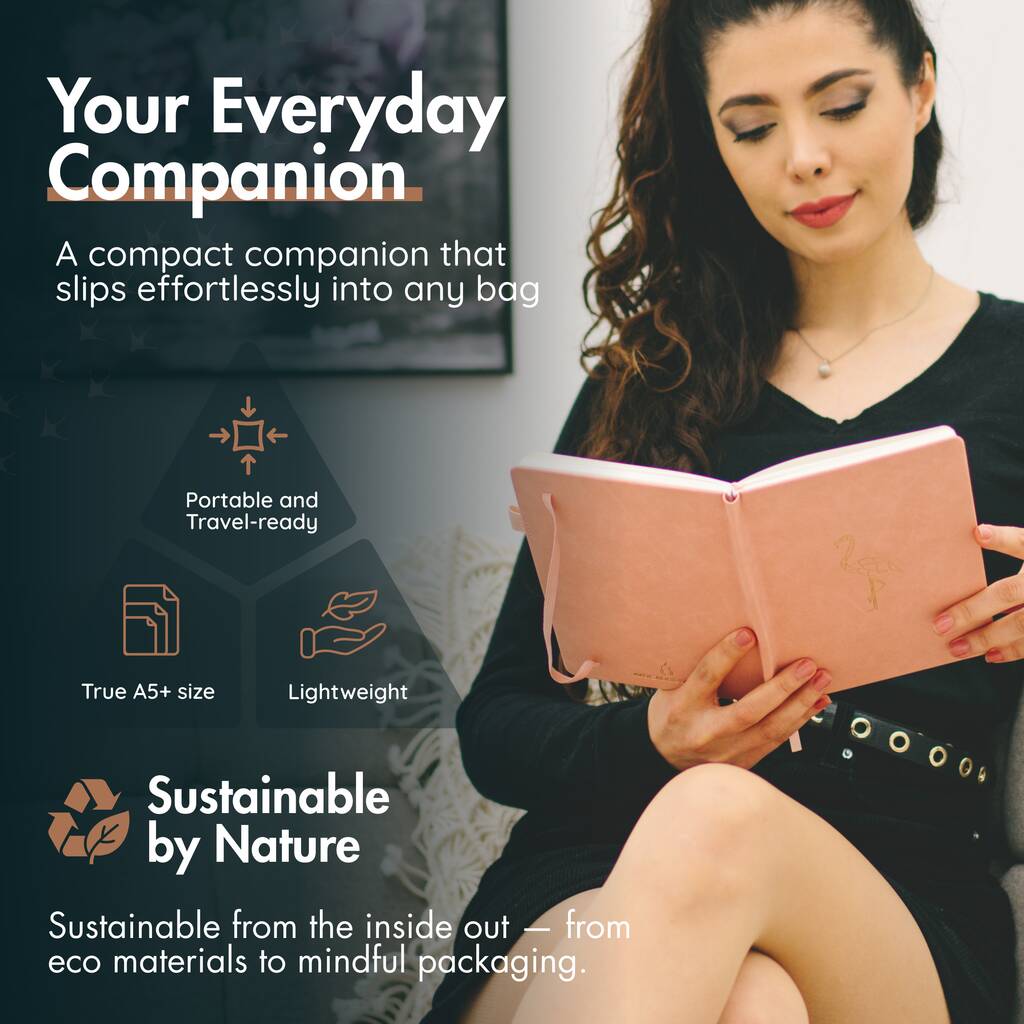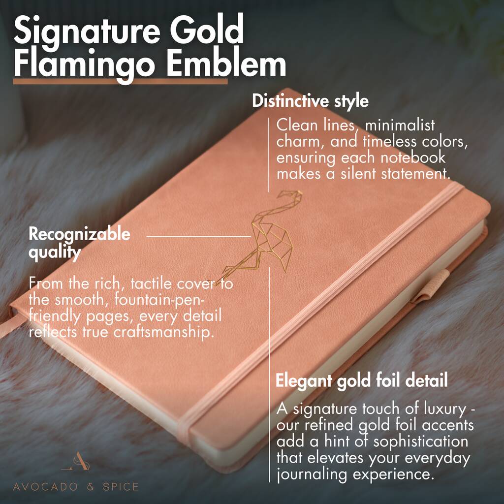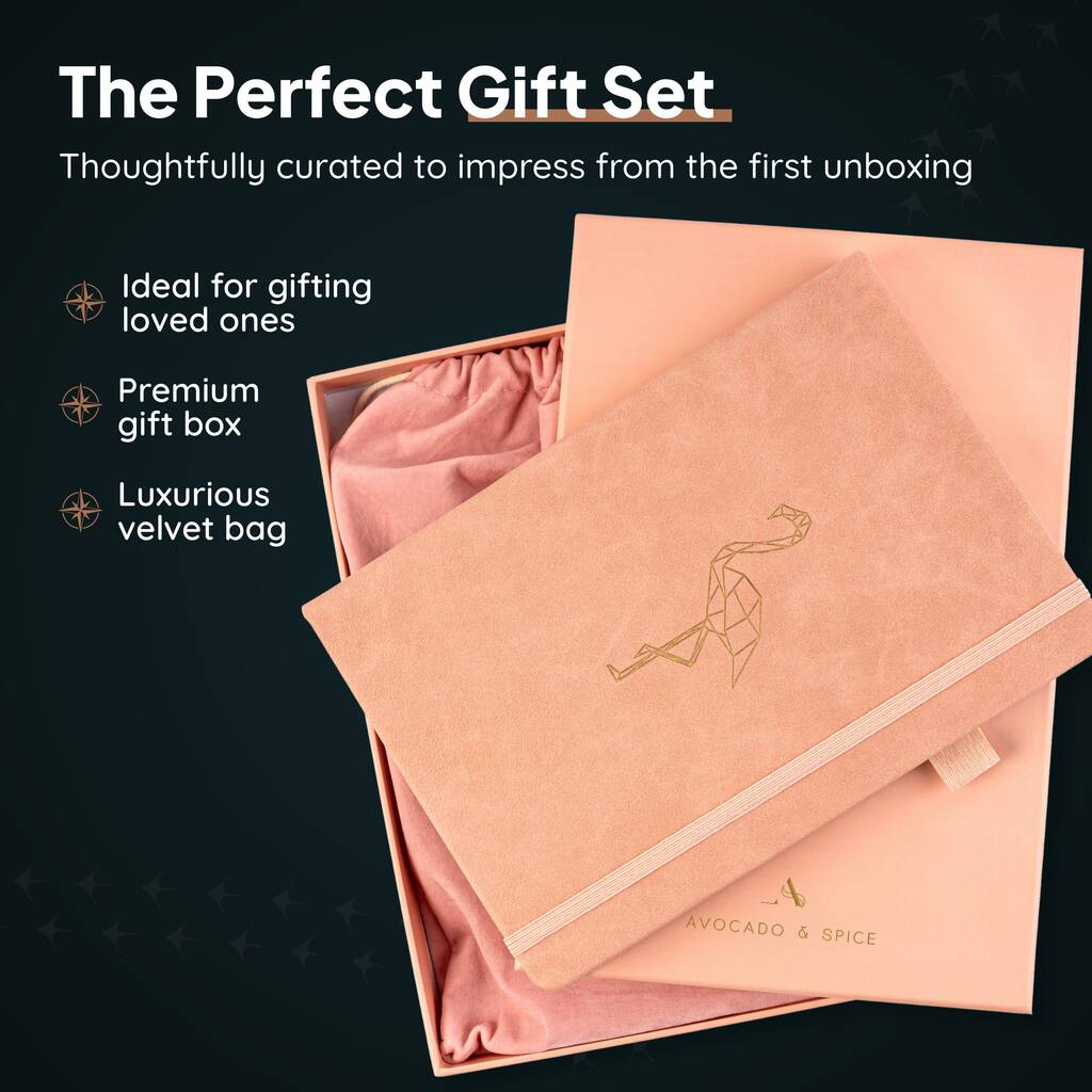 The A5 Pink Flamingo Notebook from Avocado & Spice combines style, practicality, and thoughtful design. With a buttery-soft PU leather cover and gold foil flamingo emblem, it feels as good as it looks. Inside are 200 thick 120gsm cream pages, available in lined, dotted, squared, or plain, perfect for writing, planning, or sketching. Thoughtful details include a ribbon bookmark, elastic strap, and built-in pen holder to keep everything organised. Beautifully packaged, this notebook makes a meaningful gift for writers, students, professionals, or anyone who loves stationery.