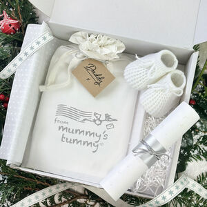 New baby gift sets are the perfect way to welcome a newborn into the world. Discover our original collection filled with the most thoughtful gift sets for babies to say congratulations to new mums on their new arrival. Whether it's a pamper kit for Mum or new baby clothes for the little one, these baby gift sets will make those first few months even more special. The best part? You can personalise many of them with names or a meaningful message.