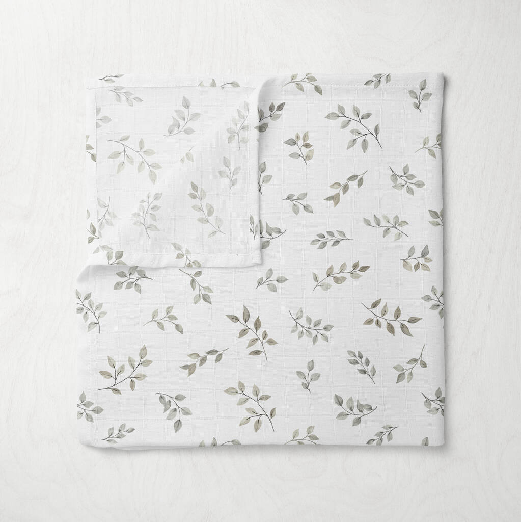 Set Of Two Grey Delicate Leaves Bamboo Muslin Squares