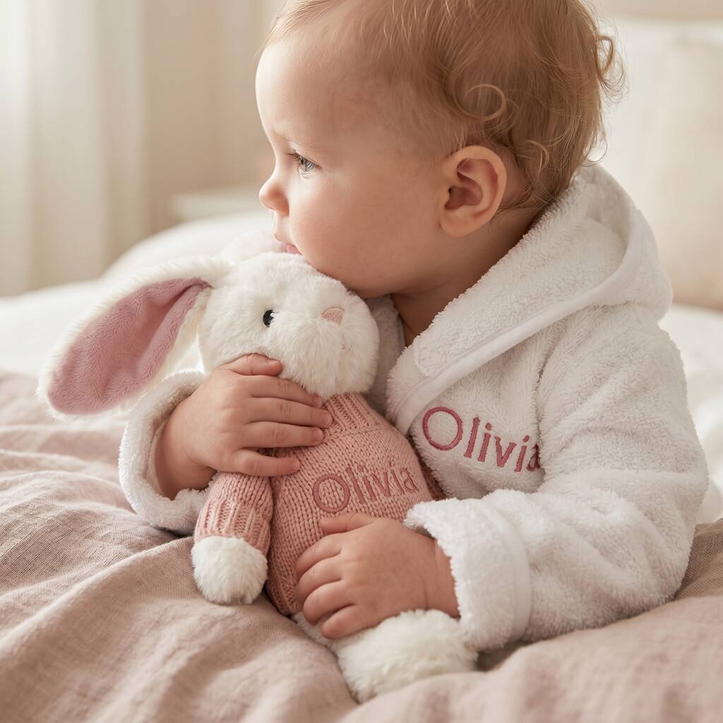 Personalised Baby Girl Bunny And Bathrobe Hamper