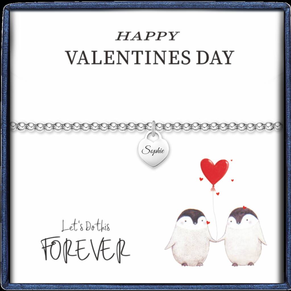 Personalise Silver Bead Heart Charm Bracelet Engraved Name