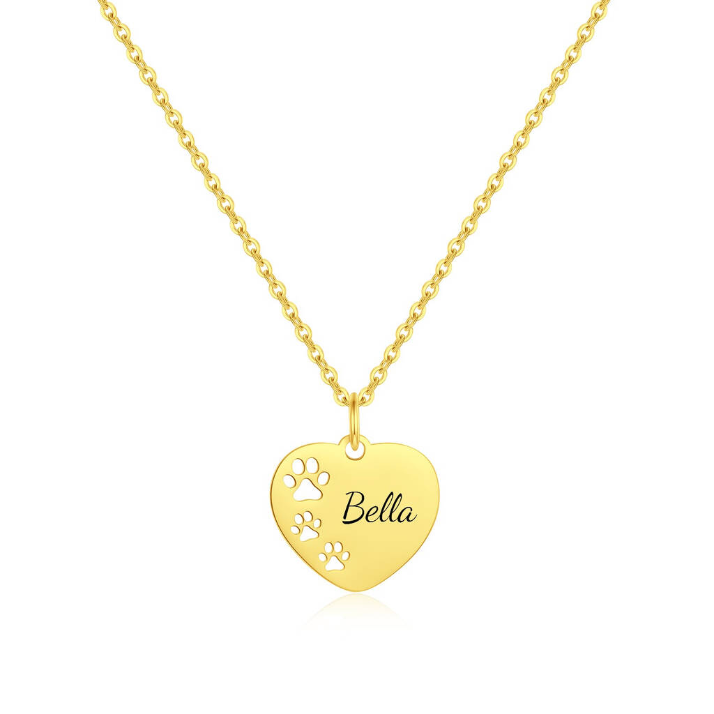Personalised Engraved Name Necklace Dog Paw Print Design