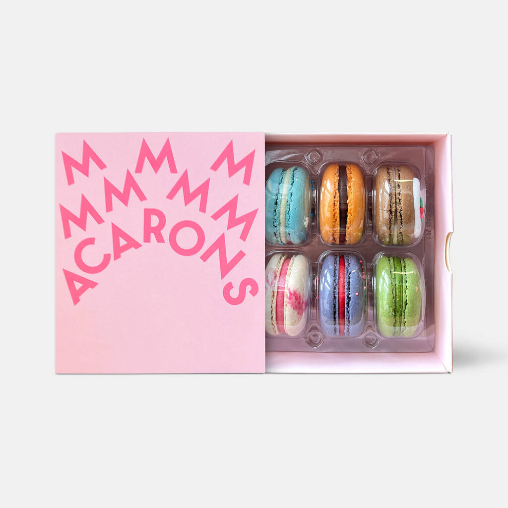 VANILLA: ground almonds, icing sugar, egg whites, food colouring, vanilla paste, butter (milk), icing sugar, milk, white chocolate (milk), cream (milk).
