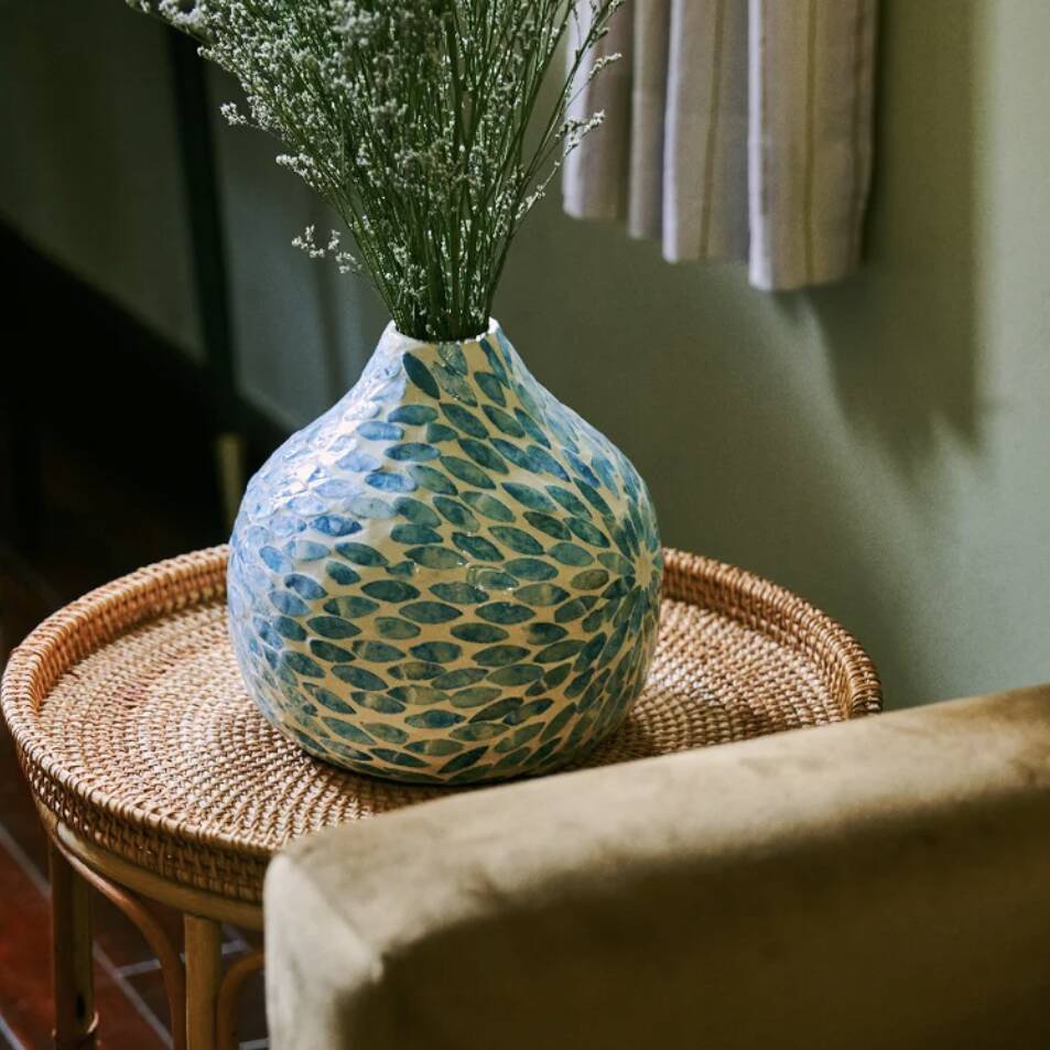 Blue Sculptural Bamboo Vase