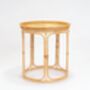 Crafted with sustainable materials, the Hoxton table's neutral tones and detailed craftsmanship make it a timeless piece that seamlessly fits into any living room, bedroom, or cozy nook. Ideal as a chic rattan coffee table, a quirky bedside table, or a functional accent table for a summer picnic, it offers both beauty and practicality.