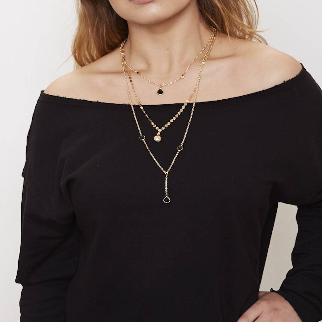 Long Gold Plated Multi Strand Black Onyx Necklace