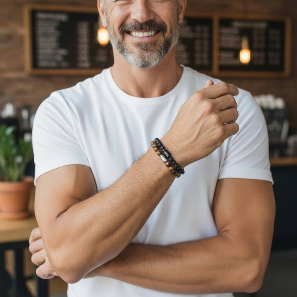 Men's Arsenal Beaded Tiger's Eye And Lave Rock Bracelet Duo