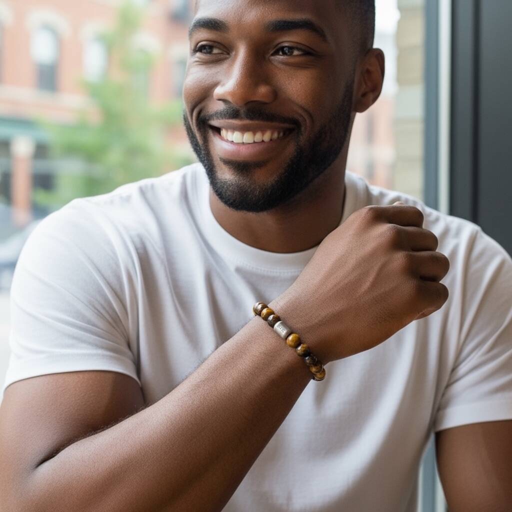 Men's Leeds United Football Fan Tiger's Eye Bracelet