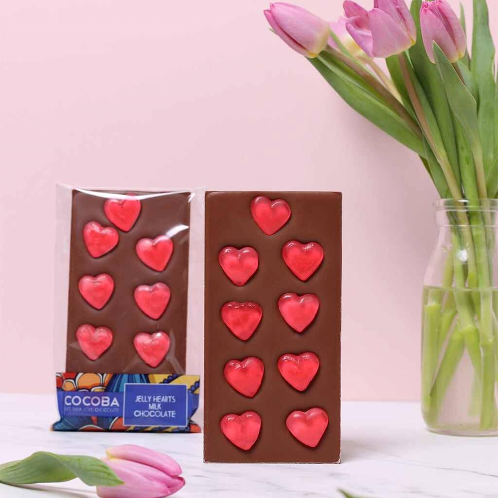 - Belgium milk chocolate heart sweeties bar by Cocoba chocolate.