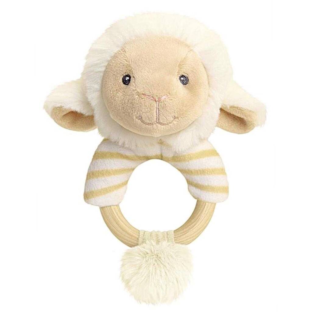 - Soft lamb toy or ring rattle (chosen at random based on stock), by Keels Eco range - all suitable from birth and beautifully soft for little hands to snuggle.