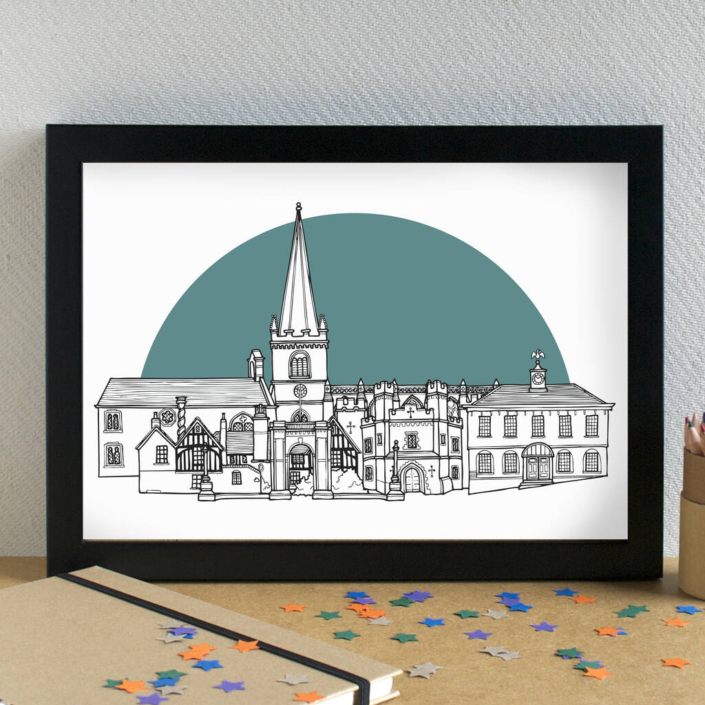 A unique art print of my skyline illustration of the most famous landmarks in Buckingham.