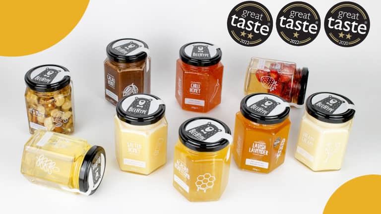 That’s how our award-winning, healthy, alternatives to salted caramel, Nutella and sweet chilli sauce were born. They have a fraction of the calories, NO palm oil, refined sugars, or allergens inside. Not only that, but they come naturally packed with essential vitamins and antioxidants – you can thank the bees for that!