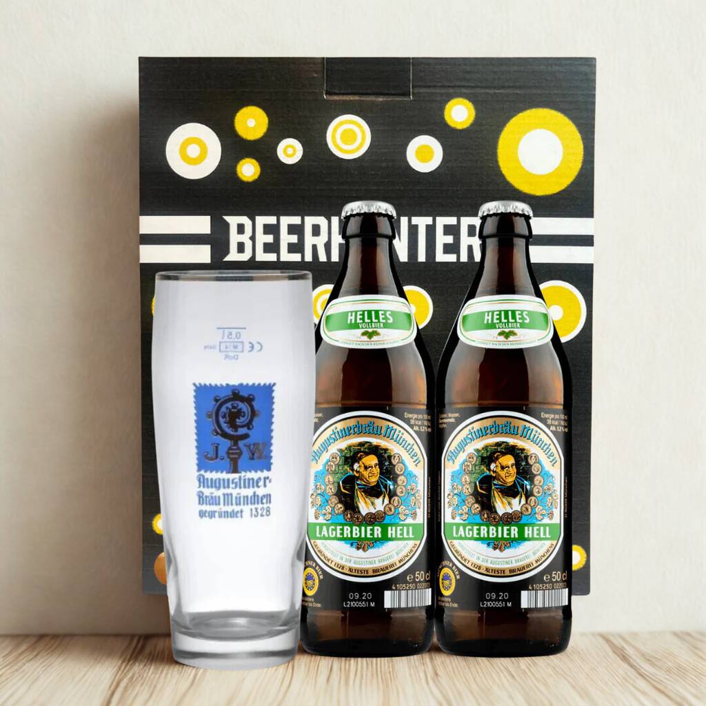 Augustiner Helles German Lager Beer Gift Set With Branded Glass