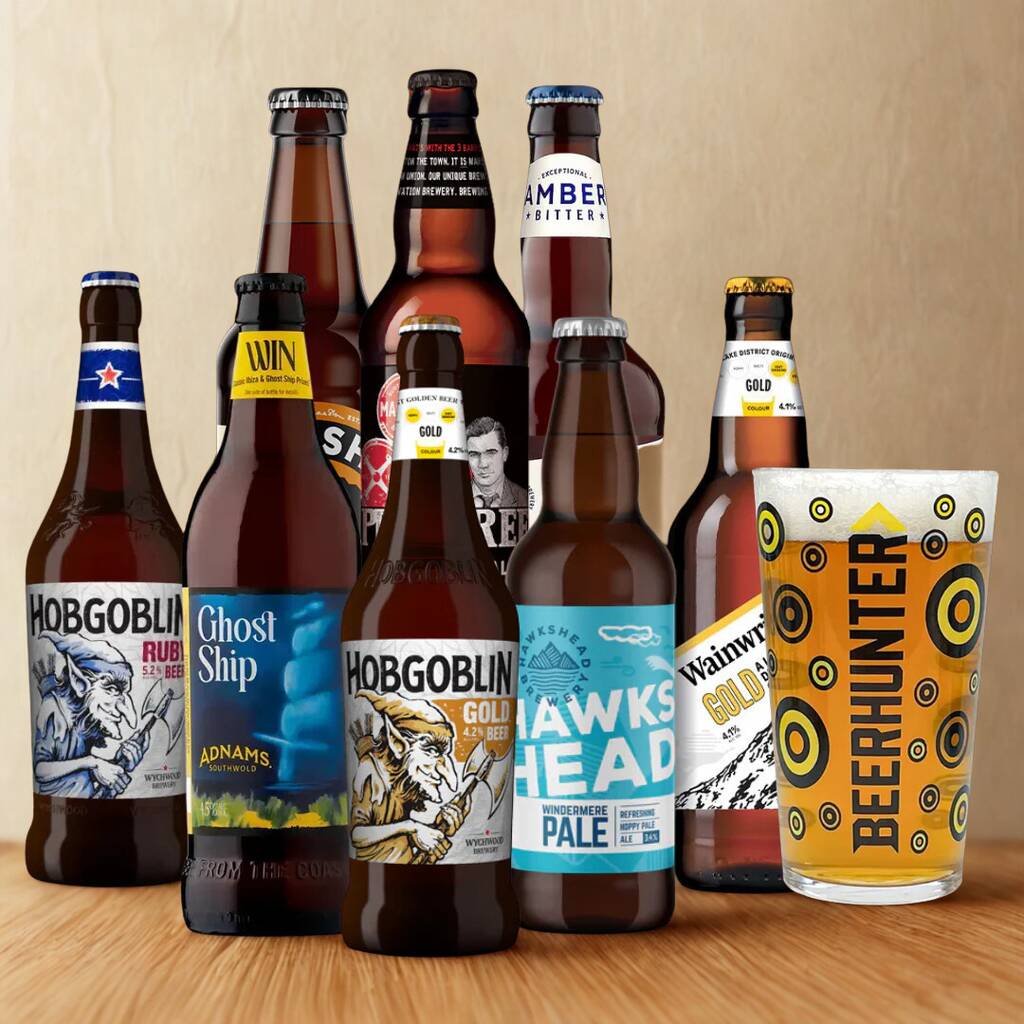 Best Of British Ale Mixed Beer Selection With Glass Eight Beers