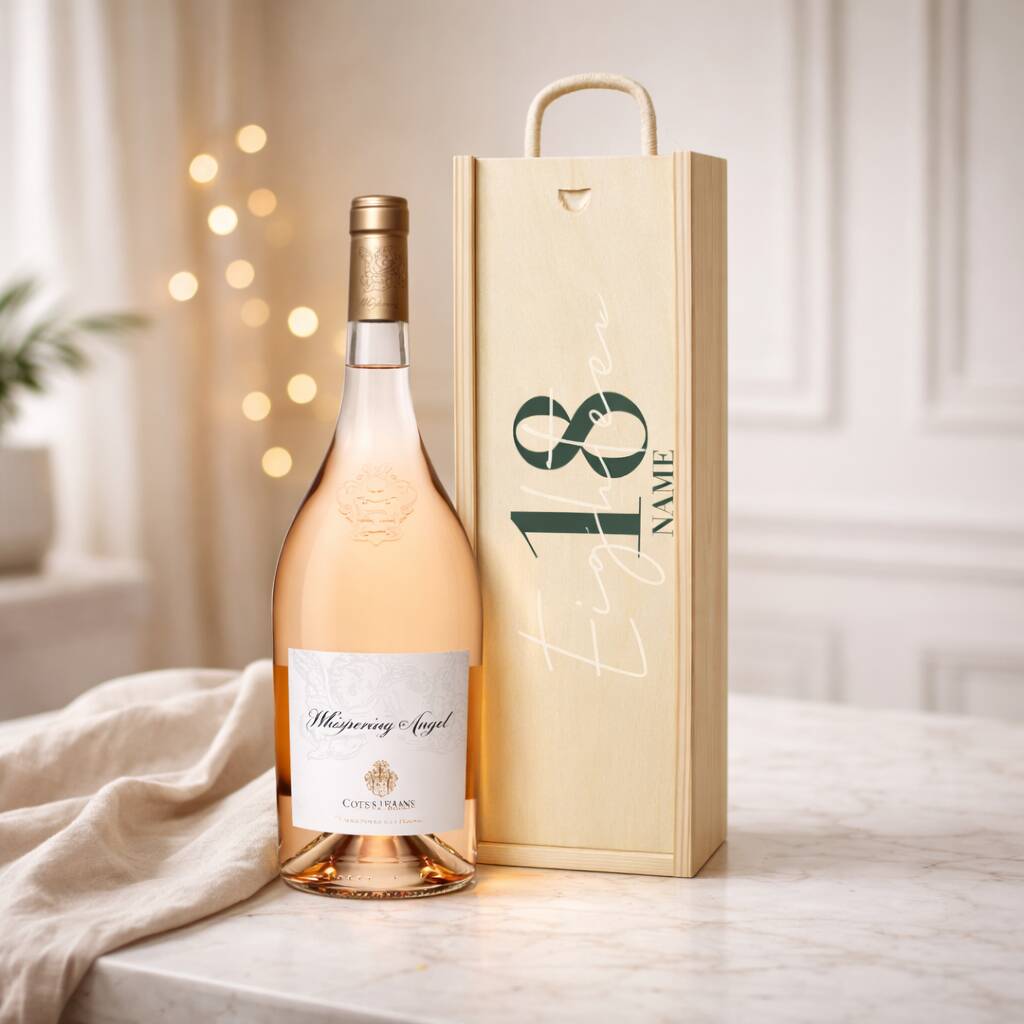 Personalised 18th Birthday Whispering Angel Rose Wine Gift Set