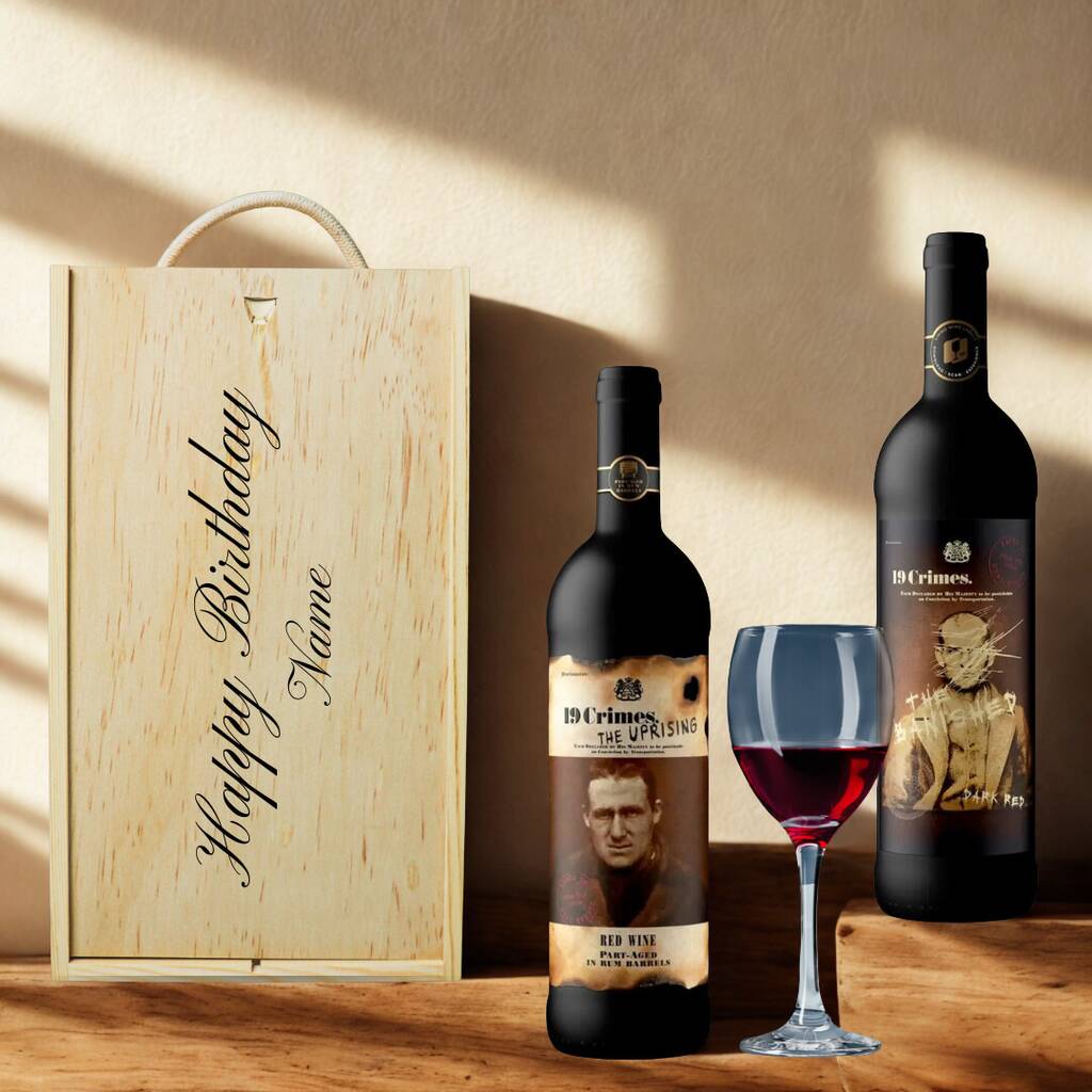 Personalised 19 Crimes Red Wine Gift Set For Occasions