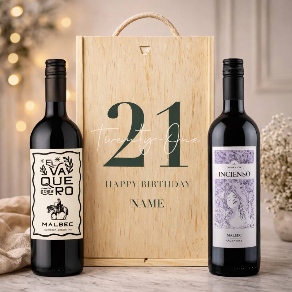 Personalised 21st Birthday Malbec Classic Red Wine Two Bottle Gift Set