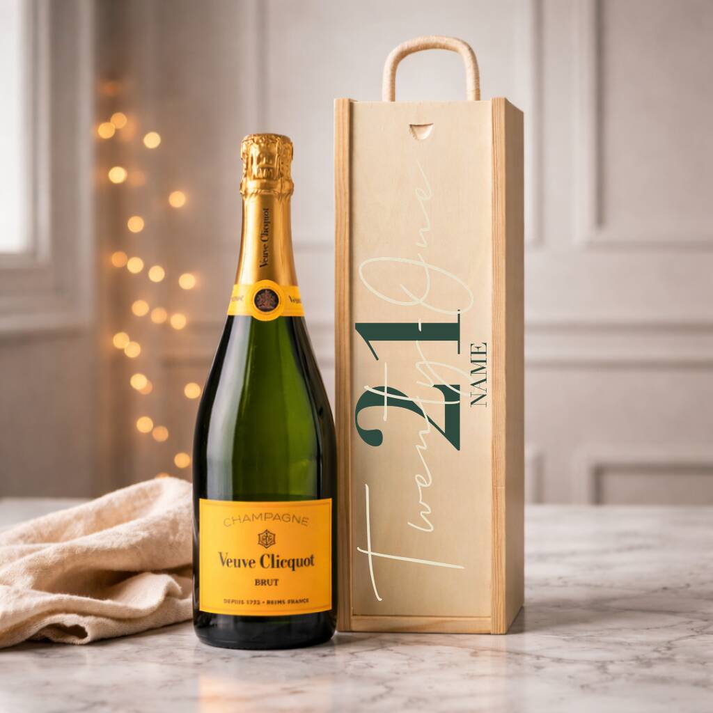 Celebrate a milestone 21st birthday with this personalised Veuve Clicquot Champagne gift set, a luxurious and iconic choice for a memorable celebration.