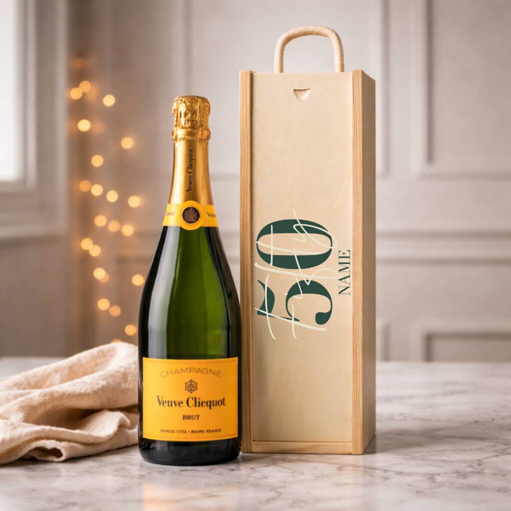 Celebrate a milestone 50th birthday with this personalised Veuve Clicquot Champagne gift set, a luxurious and iconic choice for a memorable celebration.