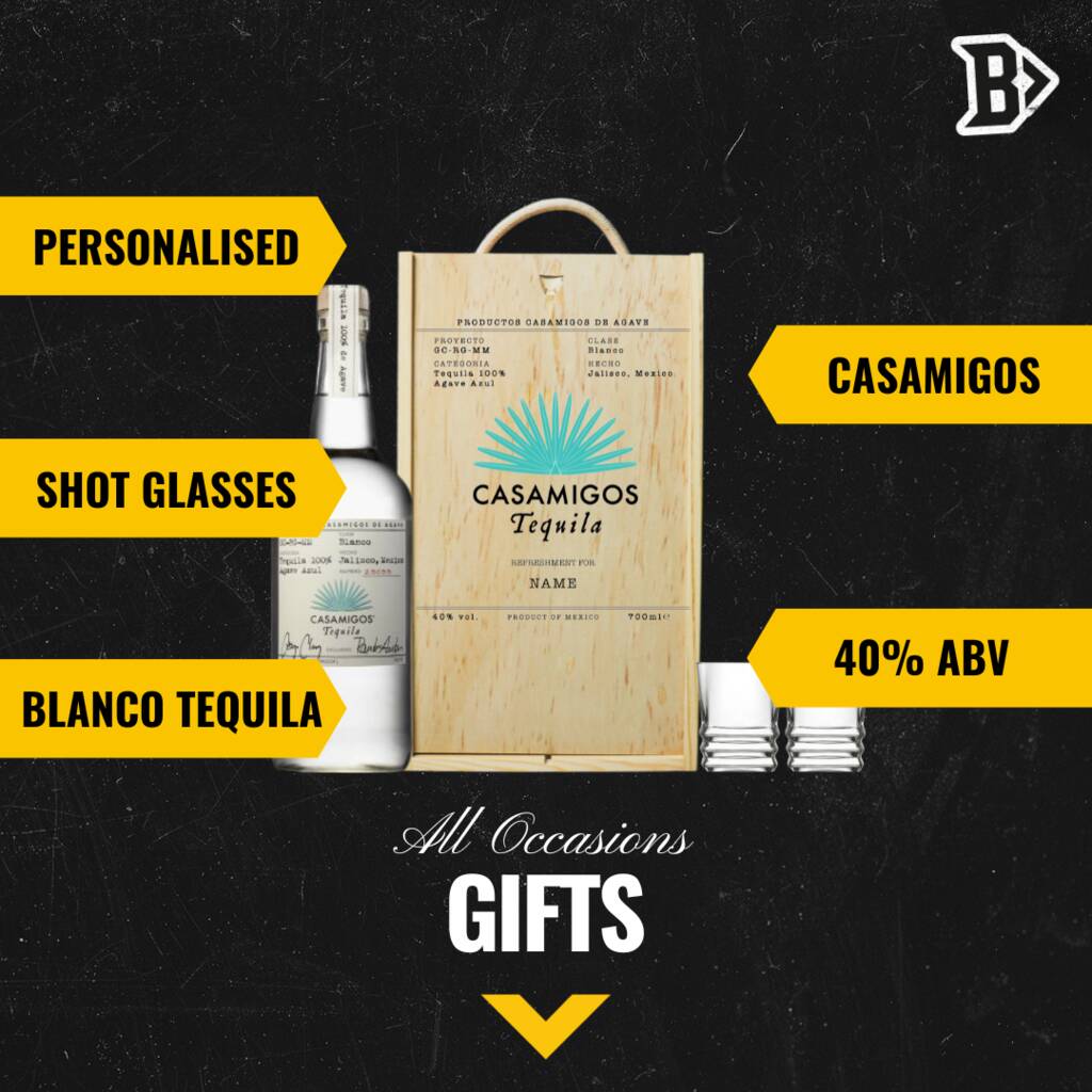 Personalised Casamigos Blanco Tequila Gift Set With Shot Glasses