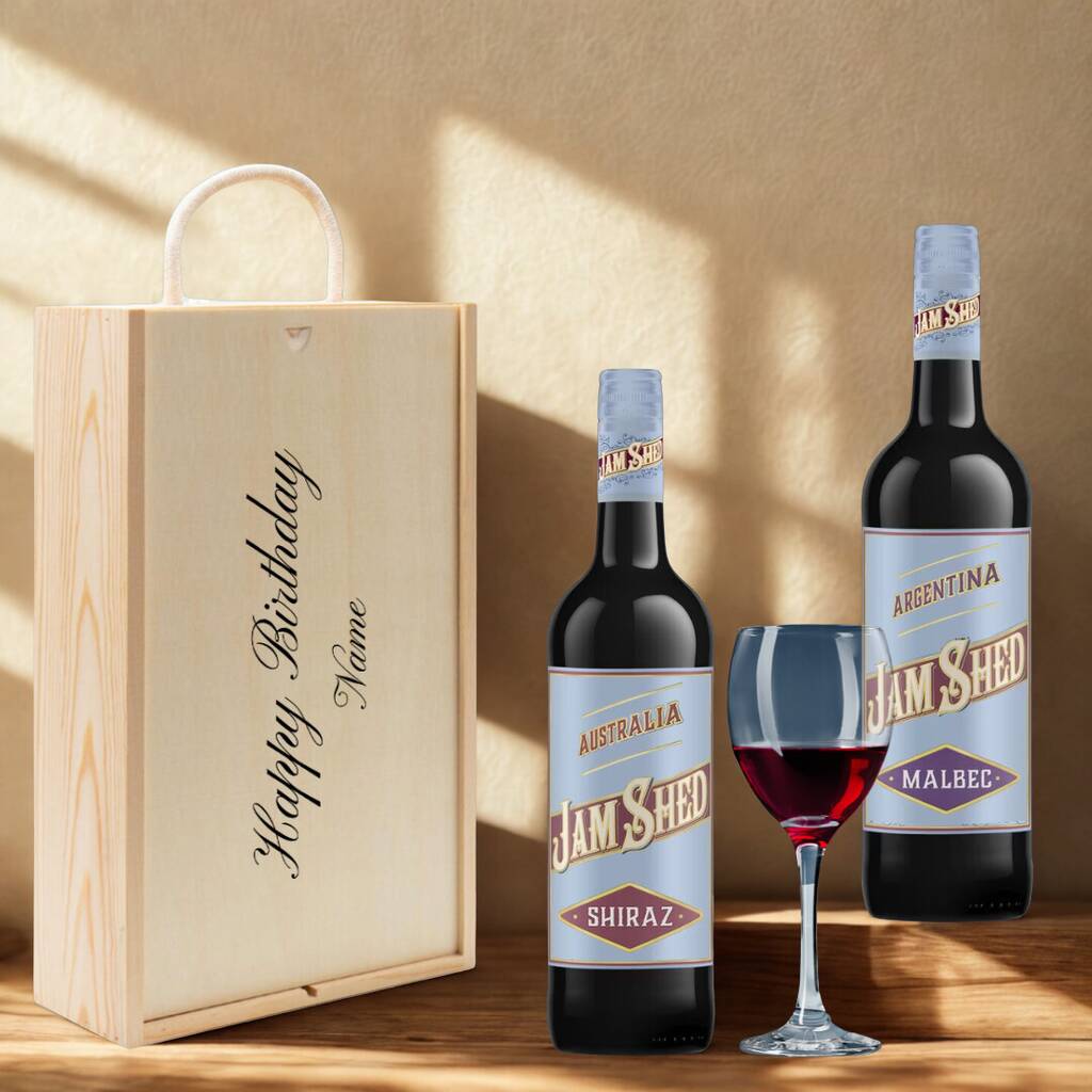 Personalised Jam Shed Red Wine Gift Set For Occasions Two Bottles