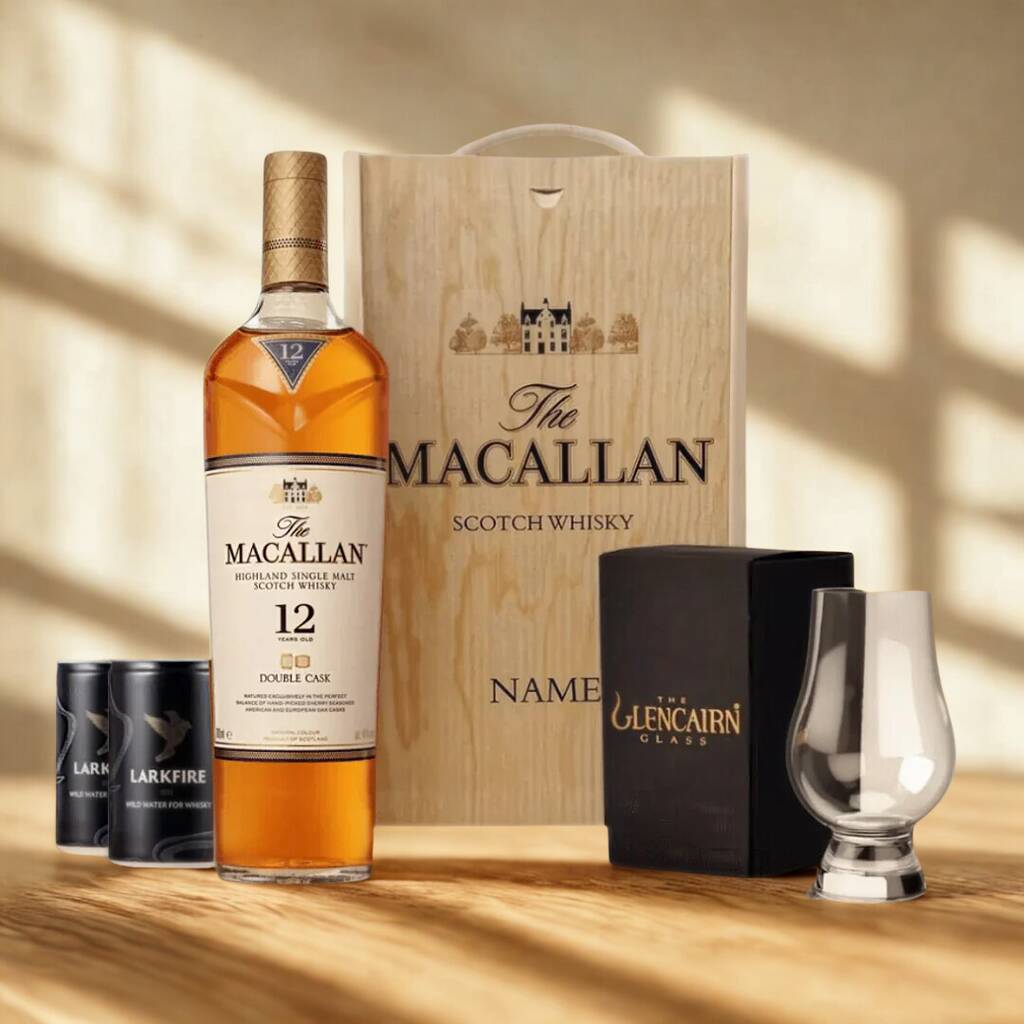 Personalised Macallan 12 Year Double Cask Scotch Whisky Gift Set With Glencairn Glass And Larkfire Whisky Water