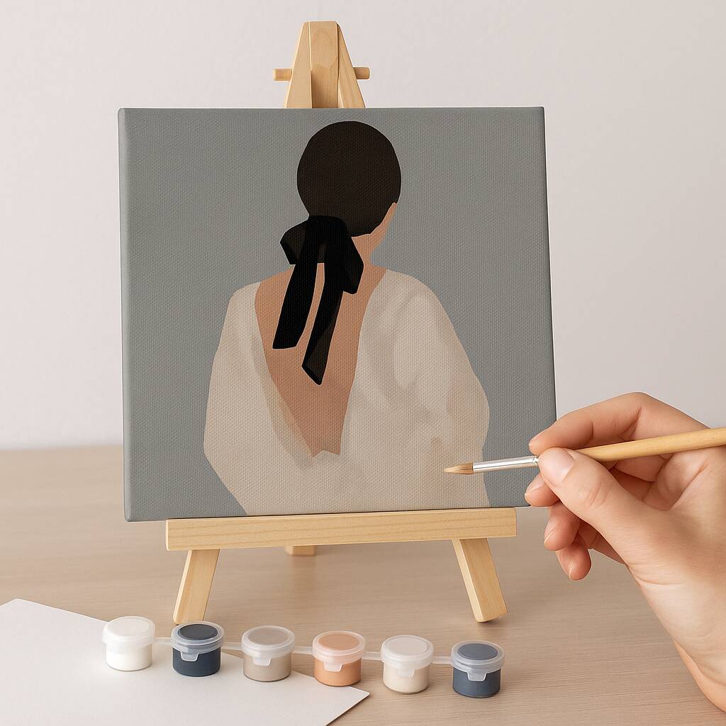 Handmade paint by numbers for adults printed on premium artist canvas. The set is complete with numbered acrylic paint pods, brushes and easel.