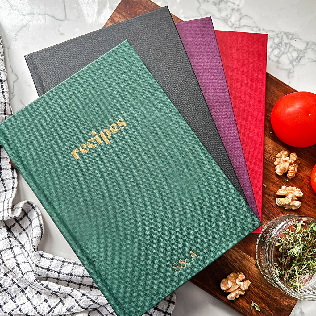 Create a Recipe Book with your favourite recipes, with our luxury recipe journal that includes templates for 50 recipes.