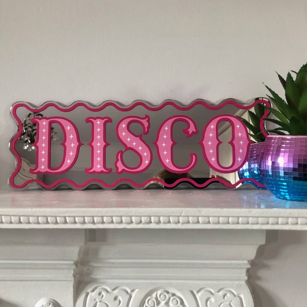A fabulous, high quality, hand finished Disco mirror sign with a trendy wavy edge.