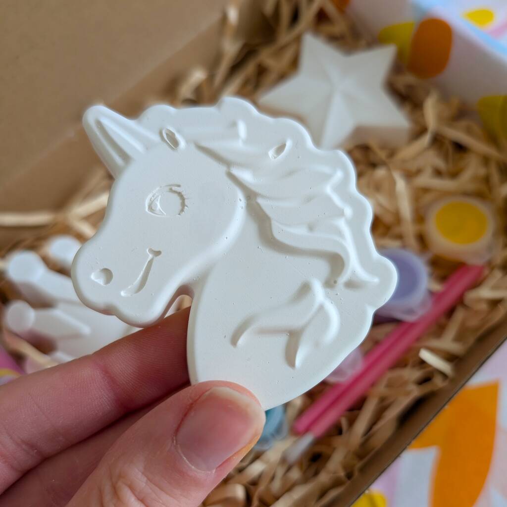Unleash creativity and spark joy with our Paint your own unicorn shapes kids’ craft gift box!
