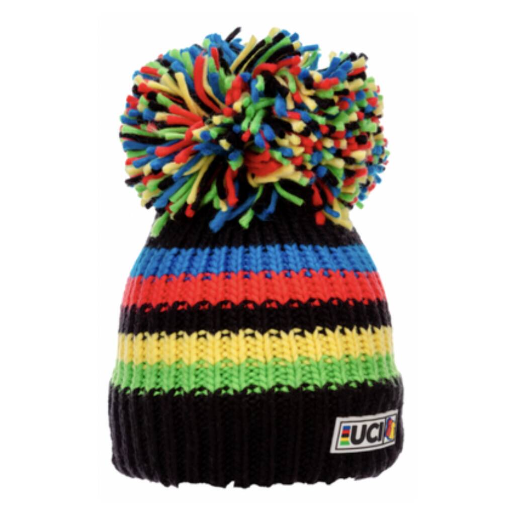 Uci Black Rainbow Stripes Striped Bobble Hat