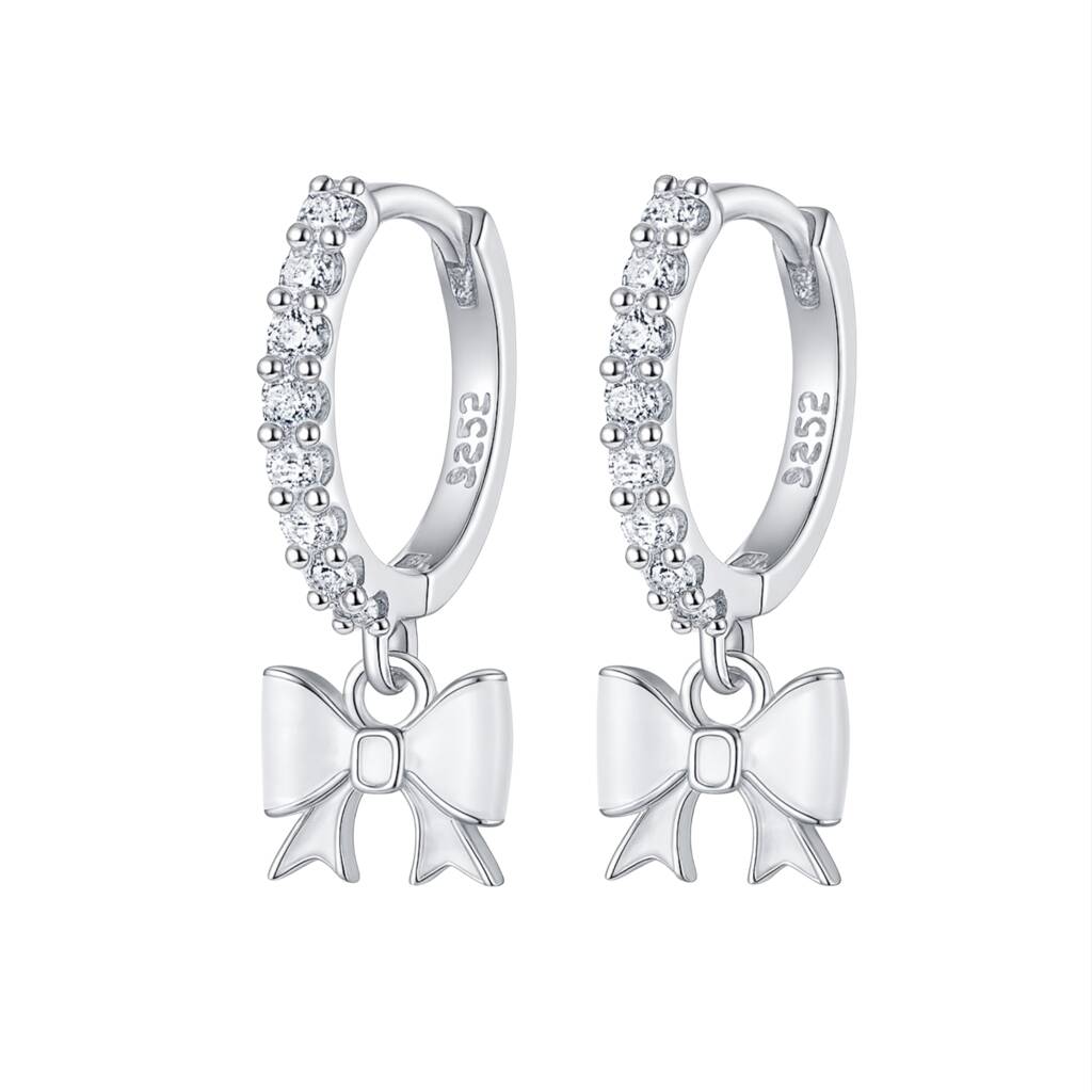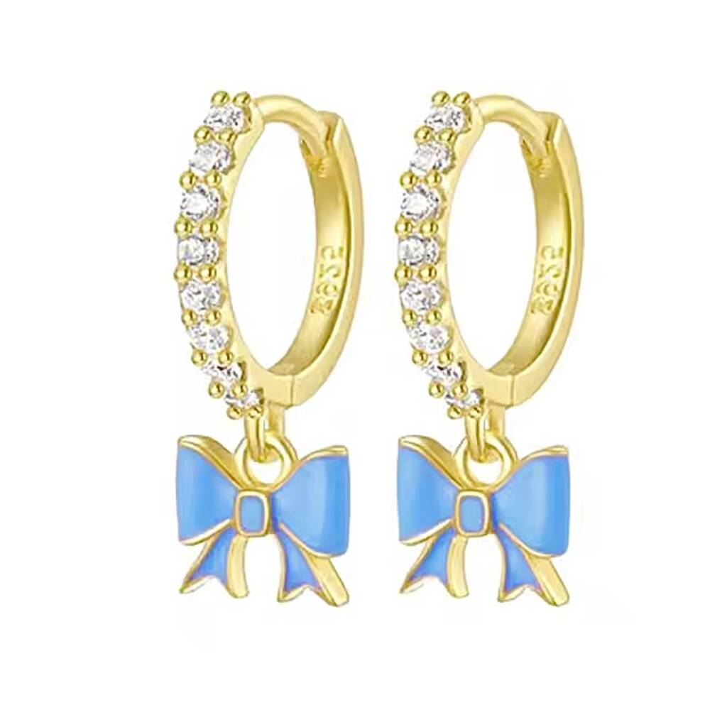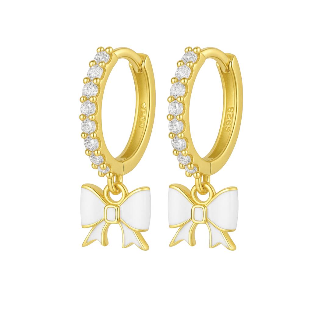 Add playful elegance with these gold huggies featuring dainty pink bows. Lightweight, sparkly, and charming—perfect for everyday wear or special occasions.