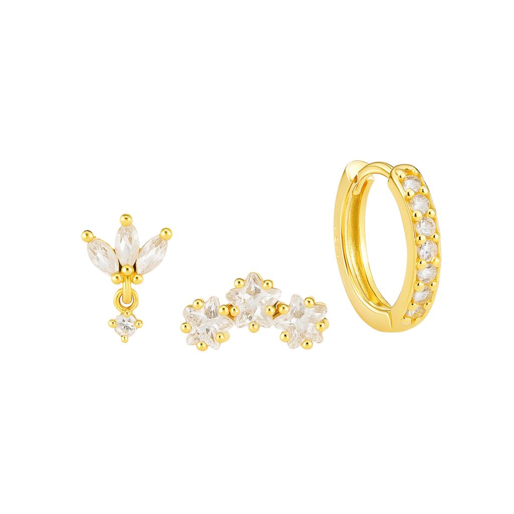 Triple Star Stud And Huggie Trio