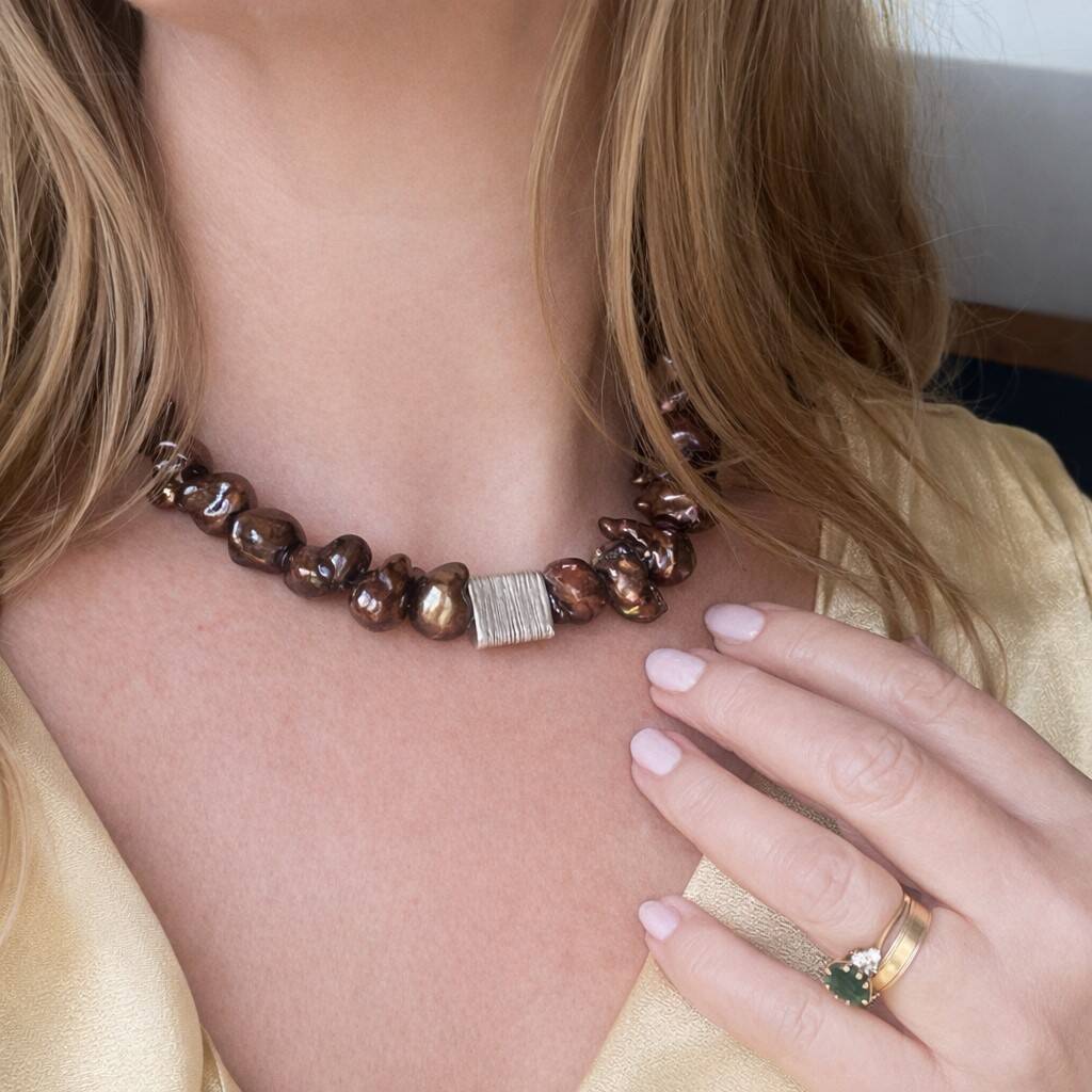 The perfect unusual statement copper brown meteor pearl necklace for a keepsake gift for her birthday or Christmas that will become a modern heirloom piece of jewellery