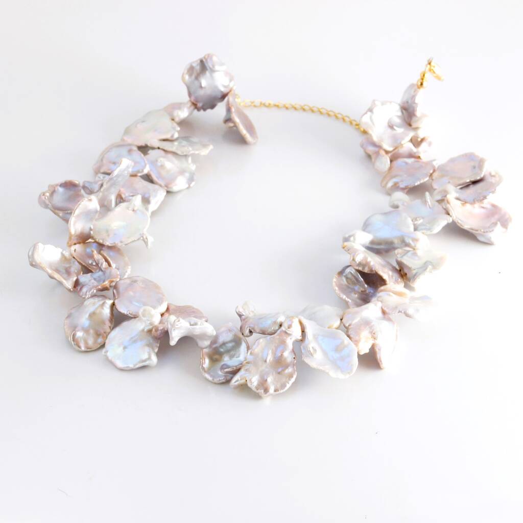 A beautiful dramatic Keshi Pearl Necklace with an adjustable sterling silver or gold plated clasp. Perfect jewellery gift for a pearl loving woman