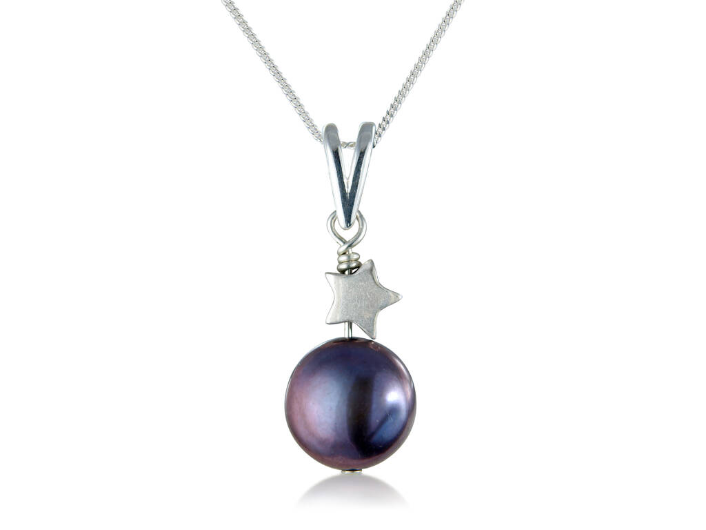 Elegant single freshwater pearl and star pendant necklace and earrings create a sterling silver jewellery set for her. Available with white or vintage pink pearls