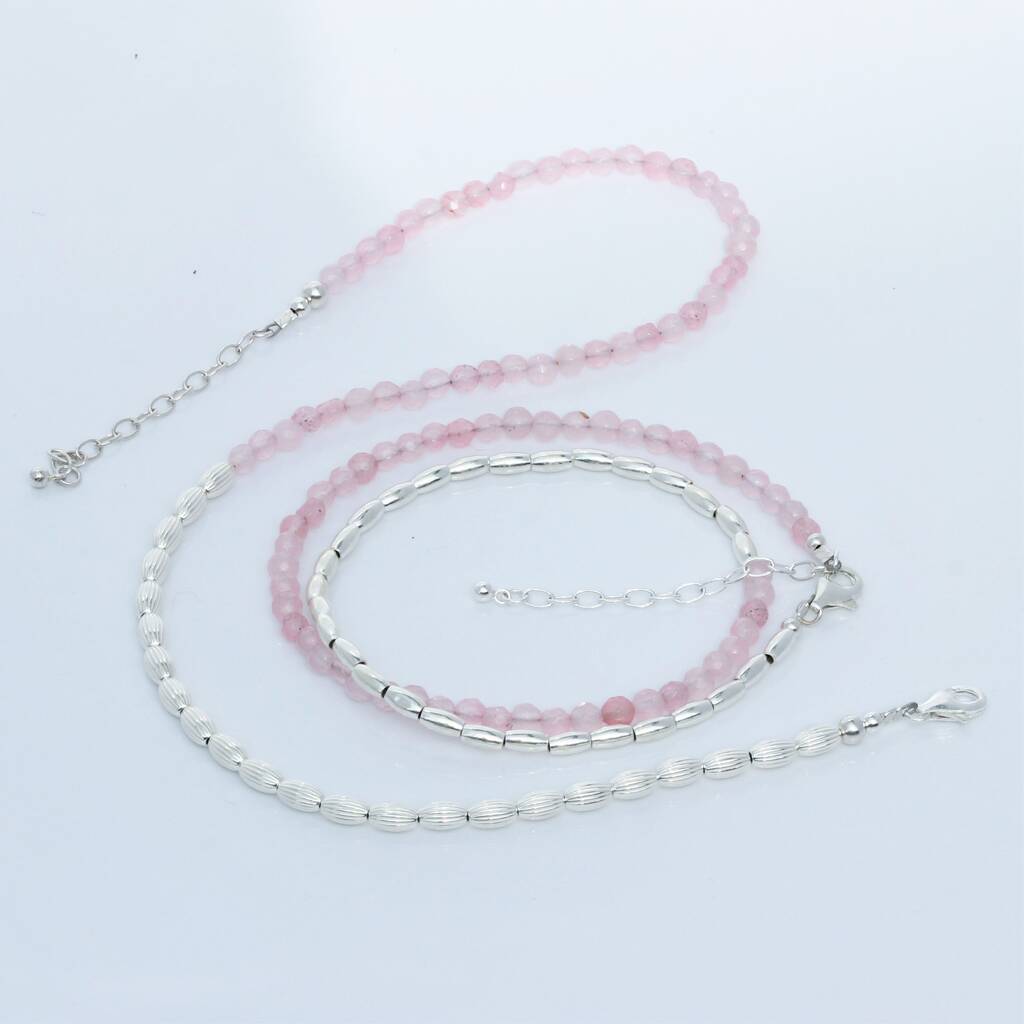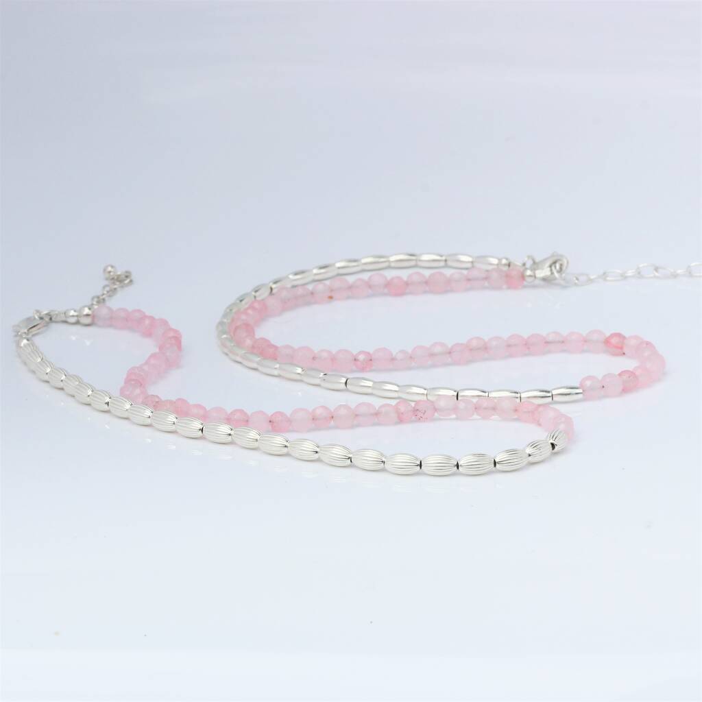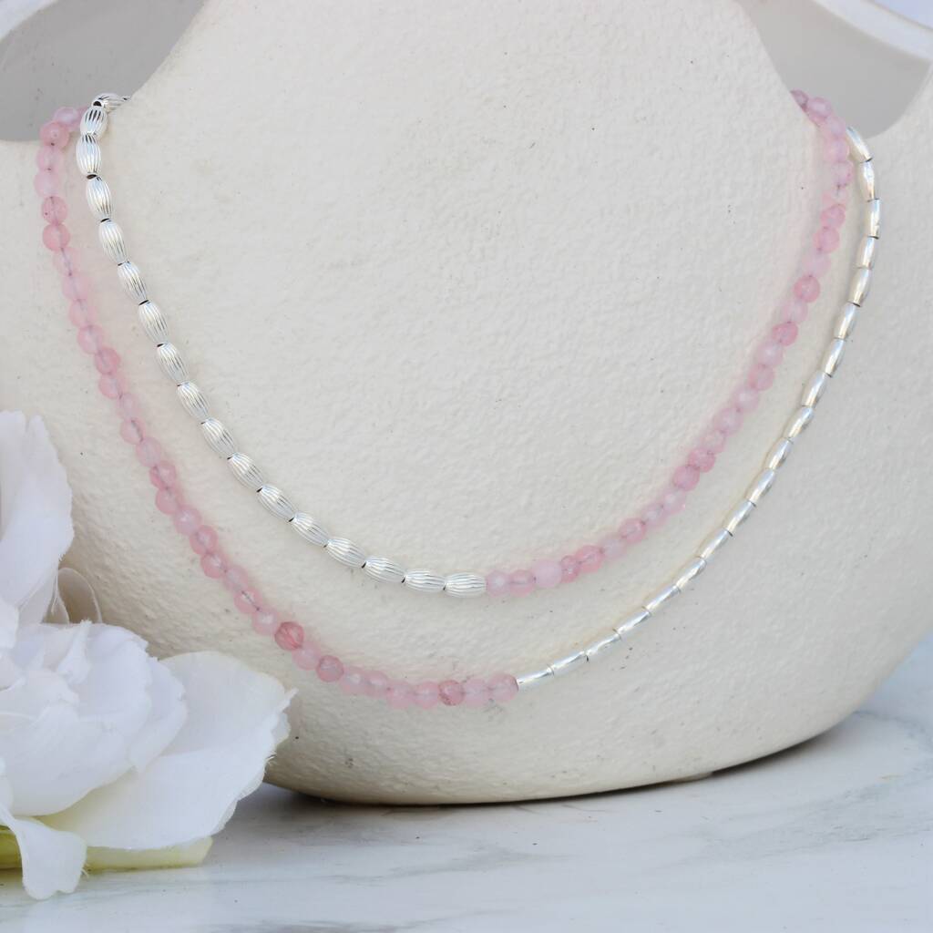 Rose Quartz gemstone and sterling silver jewellery to be worn as a necklace or double stranded bracelet. Versatile jewellery is the perfect gift for her