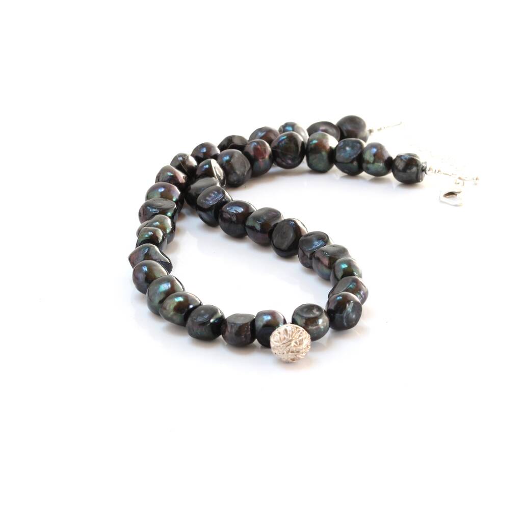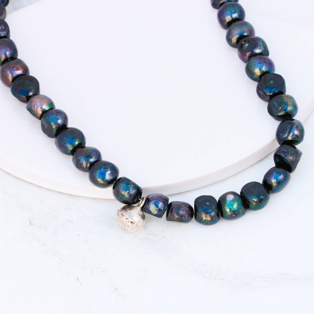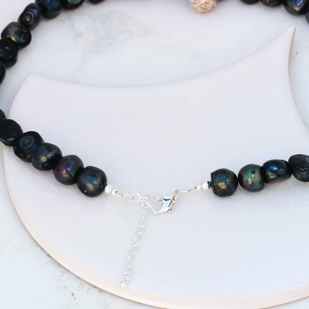 Statement Green Peacock Pearl Necklace With Sterling Silver Charm