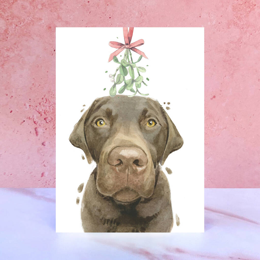 Chocolate Labrador Dog Mistletoe Christmas Card