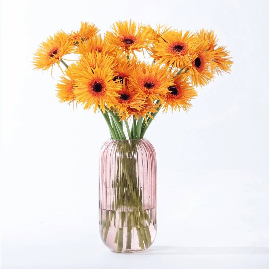 With their distinctive spiky petals radiating outward, these flowers exude a playful and energetic charm. Their bright yellow hue symbolizes happiness and warmth, making them a popular choice for celebrations, cheerful bouquets, and uplifting decor.