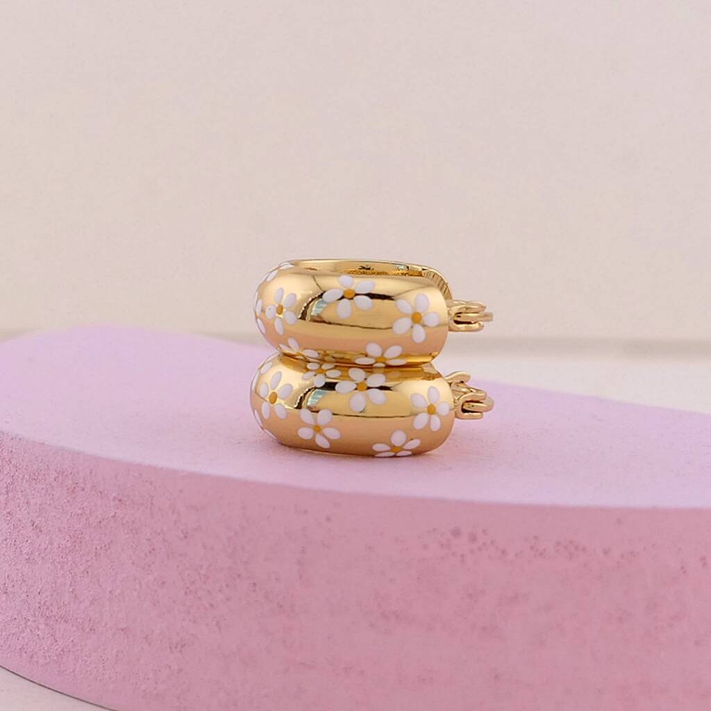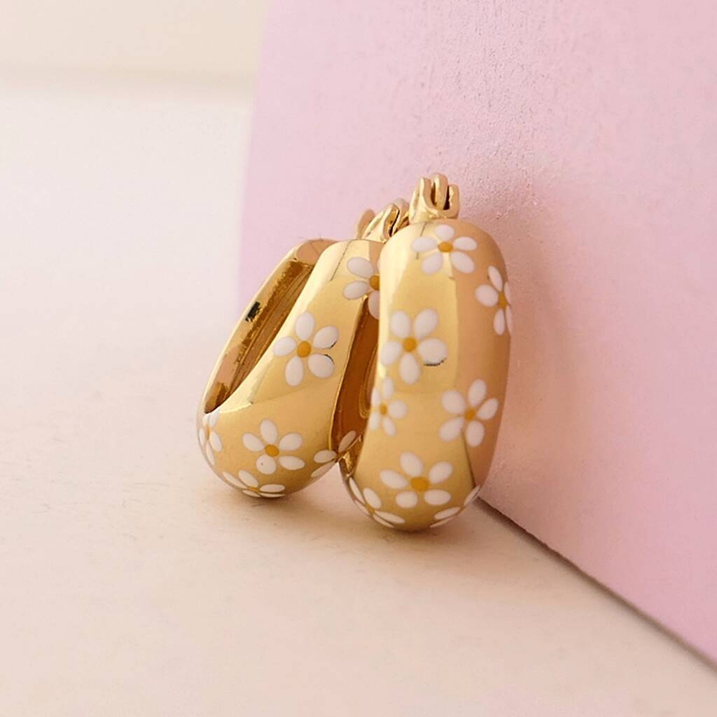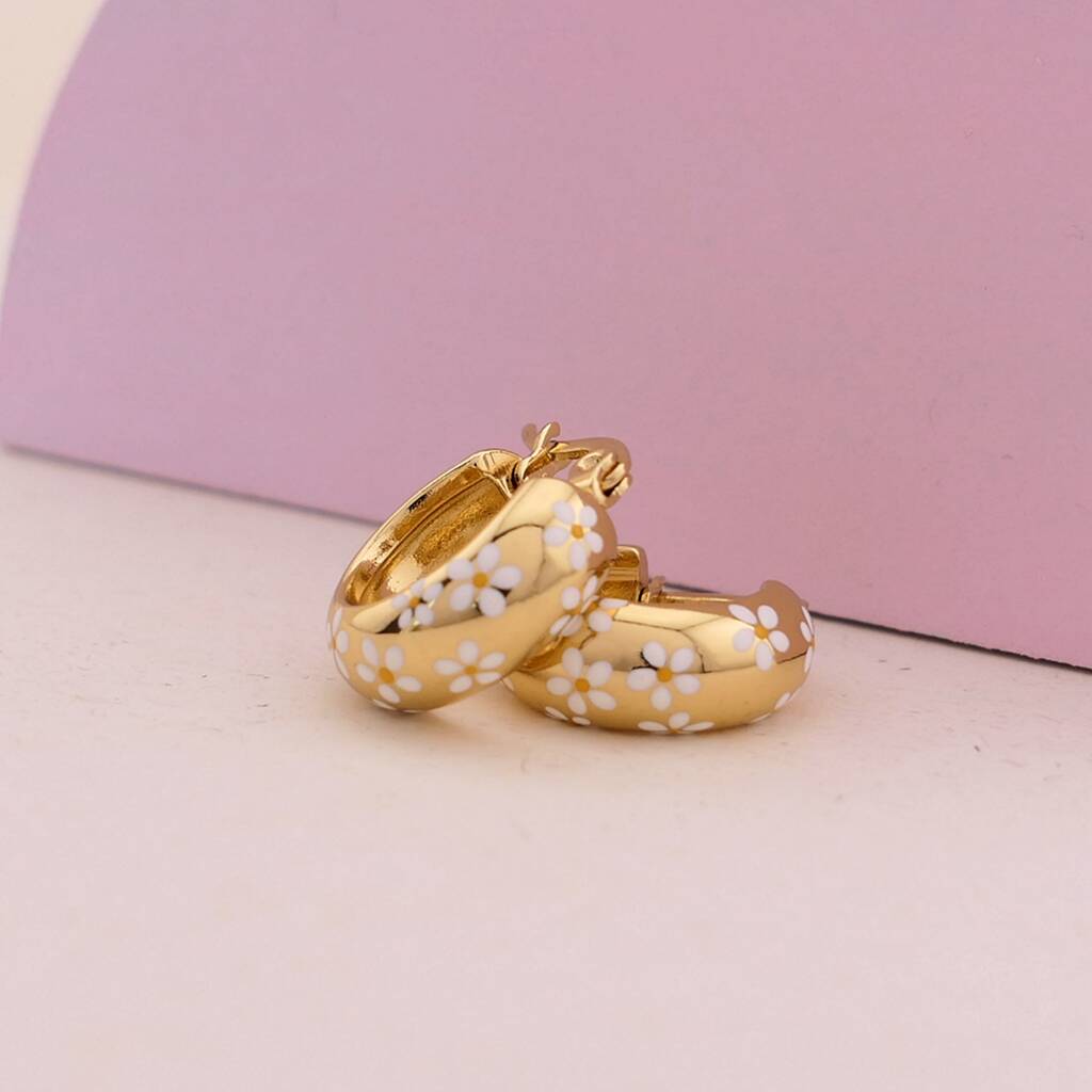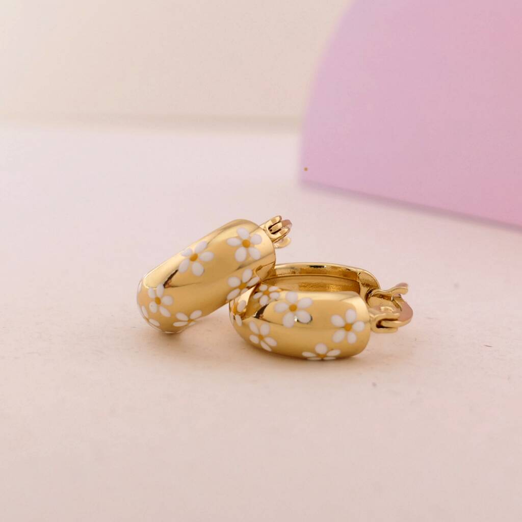 White Daisy Flower 18ct Gold Plated Huggie Hoop Earrings