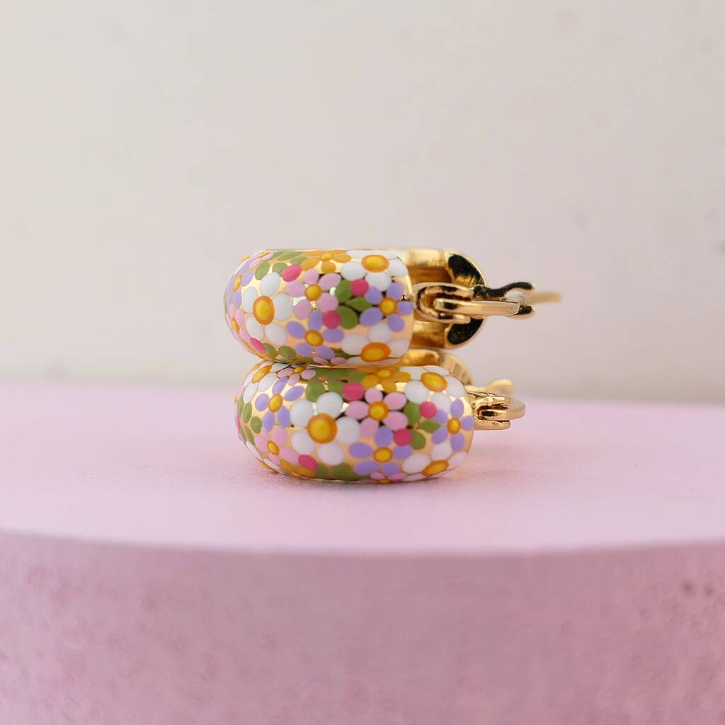 Botanical Wildflower 18ct Gold Plated Huggie Hoop Earrings