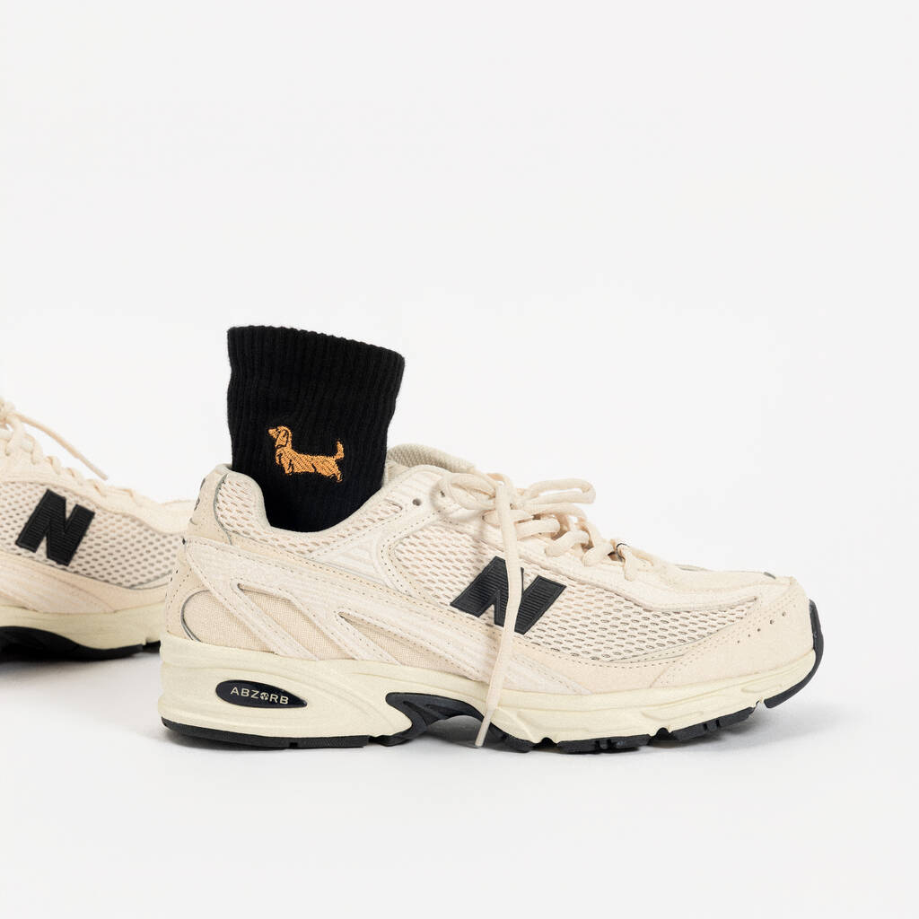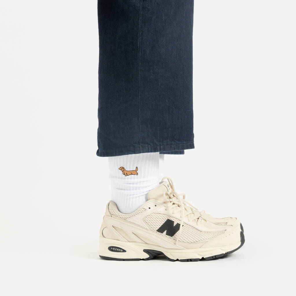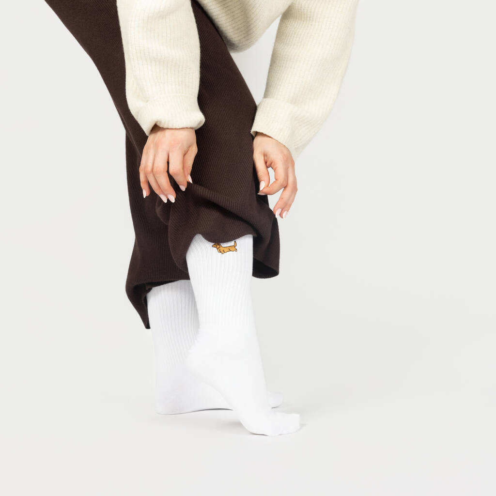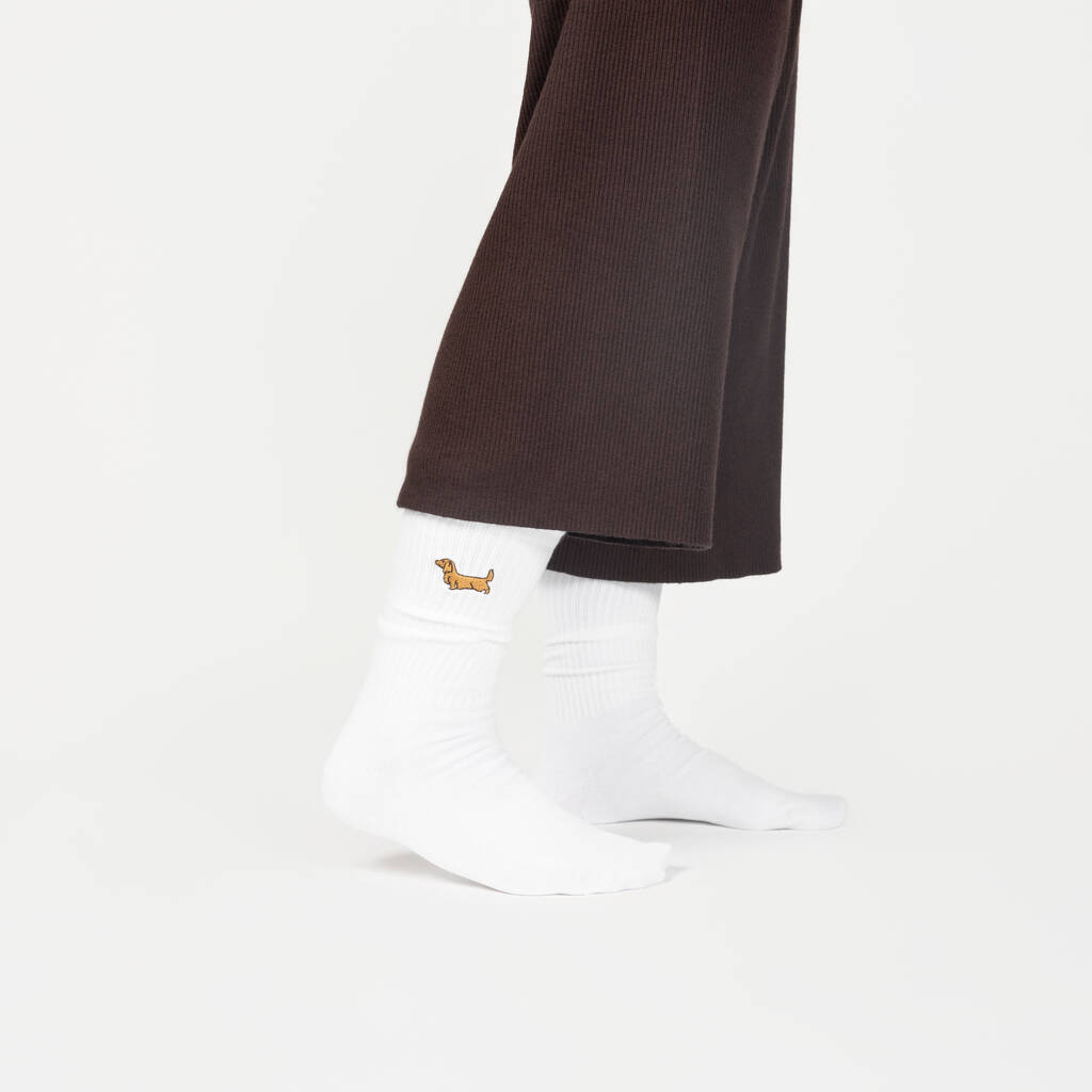 Embroidered Sausage Dog Unisex Cotton Crew Socks