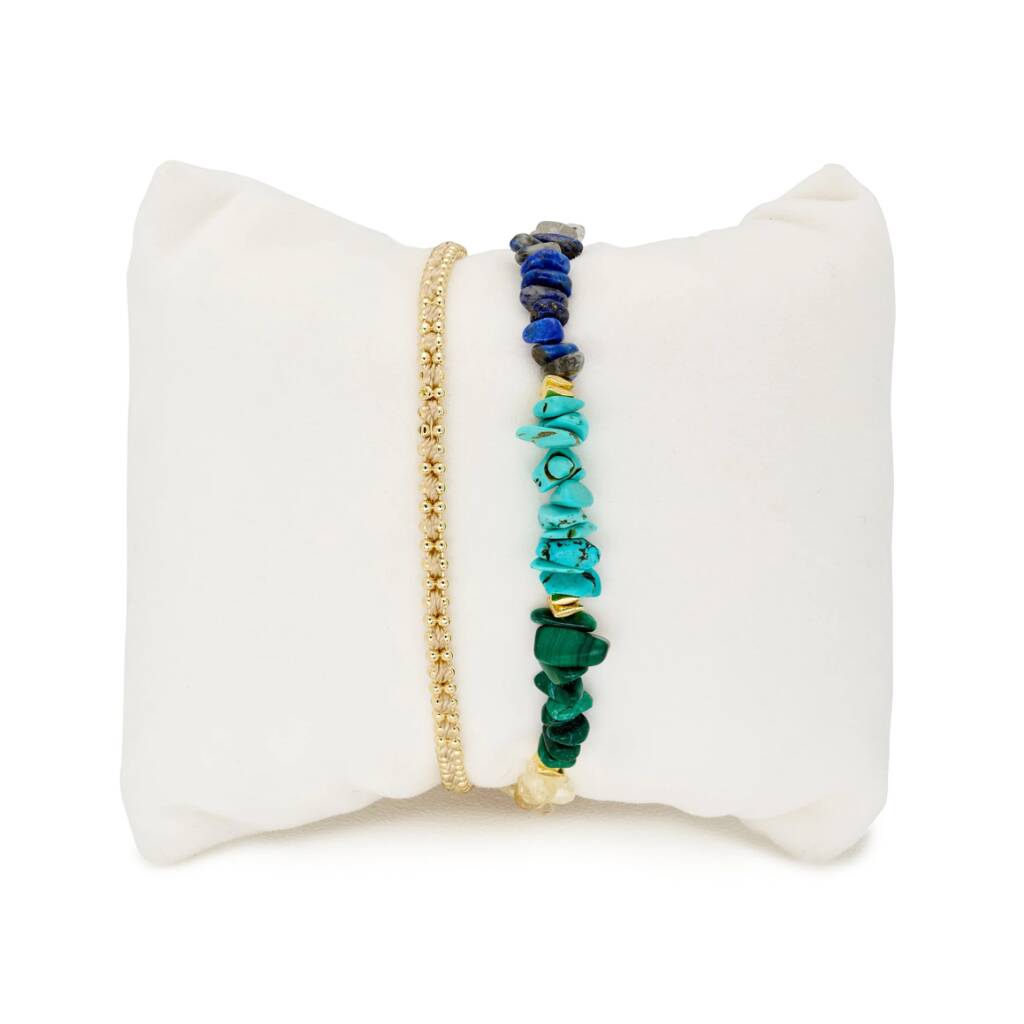 Cosmos - Add a pop of colour and wellness to your look this season with our 2 layered gemstone bracelet stack featuring Braid and Kenzo bracelets.
