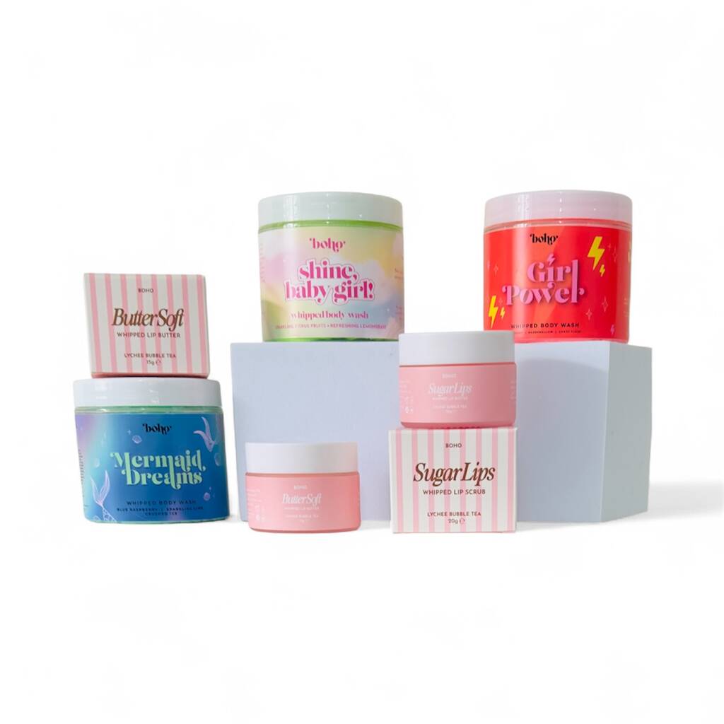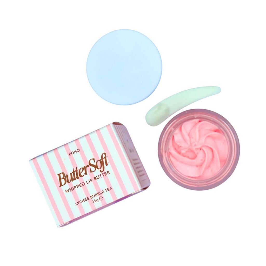 The Glow Squad Bundle includes; Whipped Lip Butter 30ml - Lychee Bubble Tea Flavour