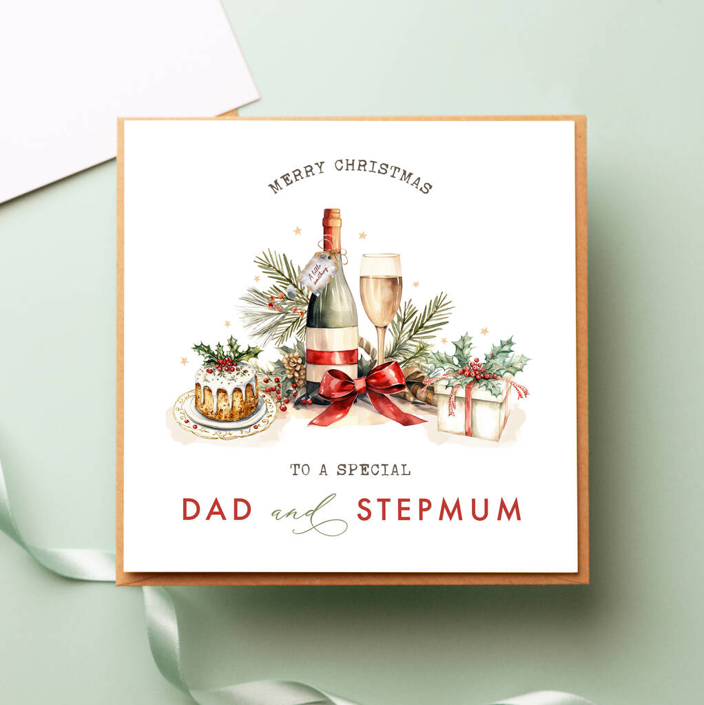 Personalised Dad And Stepmum Food And Drink Christmas Card