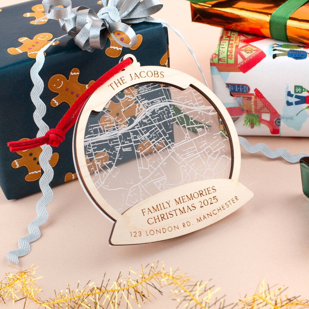 Personalised Family Memories Snow Globe Map Christmas Bauble