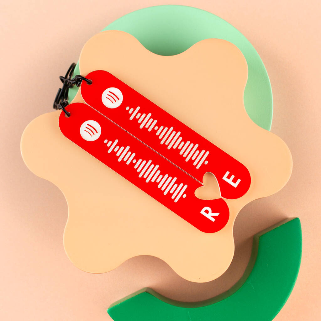 A beautifully engraved personalised dual layered acrylic keyring set, with a unique Spotify Code for a song, album or playlist of your choice.